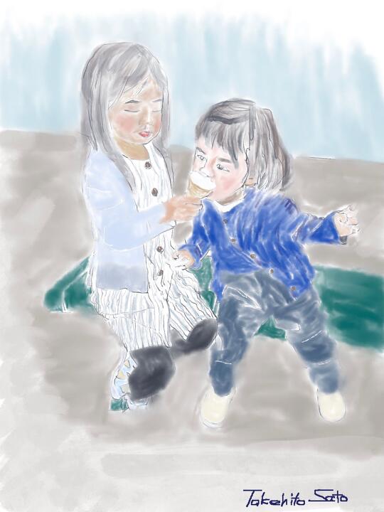 2 StudyⅠ,The kids 2019年5月、関越道高坂SAで。- Procreate,イーグルホーク.水彩風に。 |