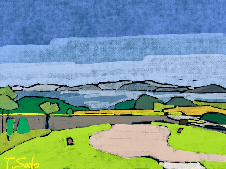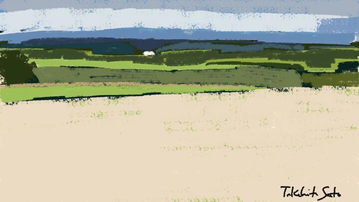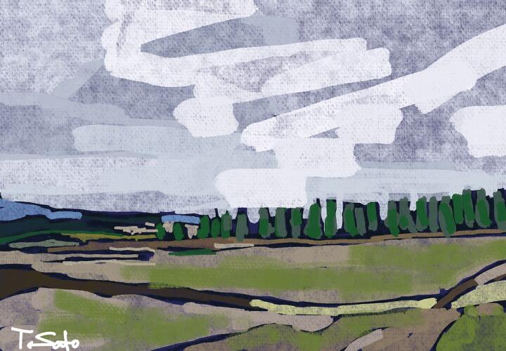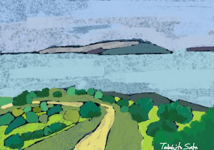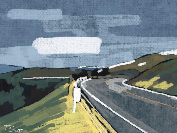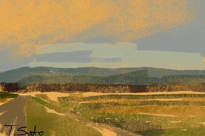 63 Late Summer,Biei 2023年9月、大学時代の仲間と北海道美瑛・富良野をサイクリング。美瑛のジェットコースターの道。- Procreate,Dryink,Moorilla