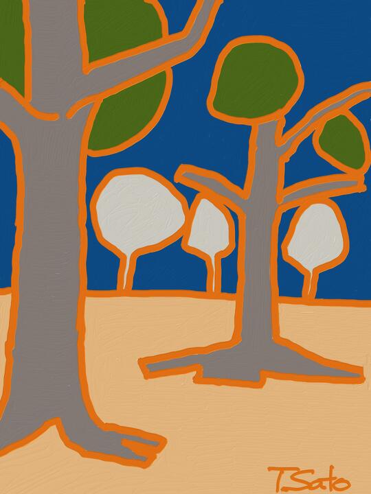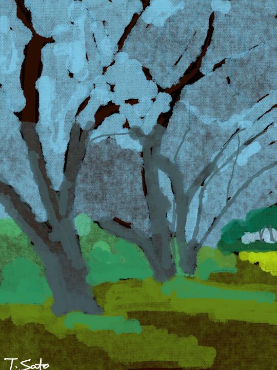 335 at Omiya 2nd Park 2924年1月 大宮第2公園で - Adobe Fresco / Oil Thick / 熊谷守一へのオマージュ
