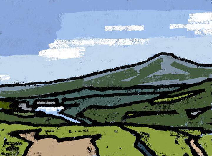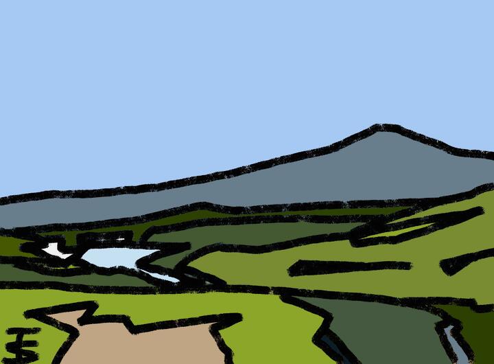 345 Mt.Oakan from Tsubetutouge 2018年8月、北海道旅行で 津別峠展望台からの雄阿寒岳 - Adobe Fresco / Inkroller+EPIC Blokenrolier