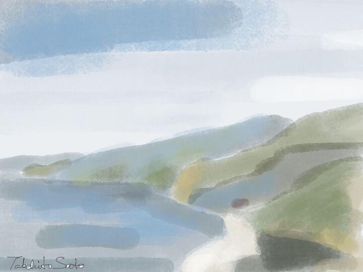312 From Teshima Art Museum 2017年11月 豊島美術館近くから - Procreate / Scratched Roller