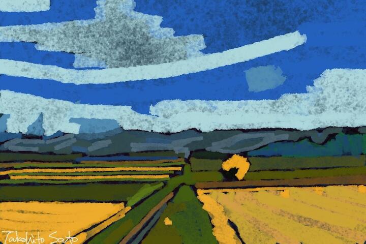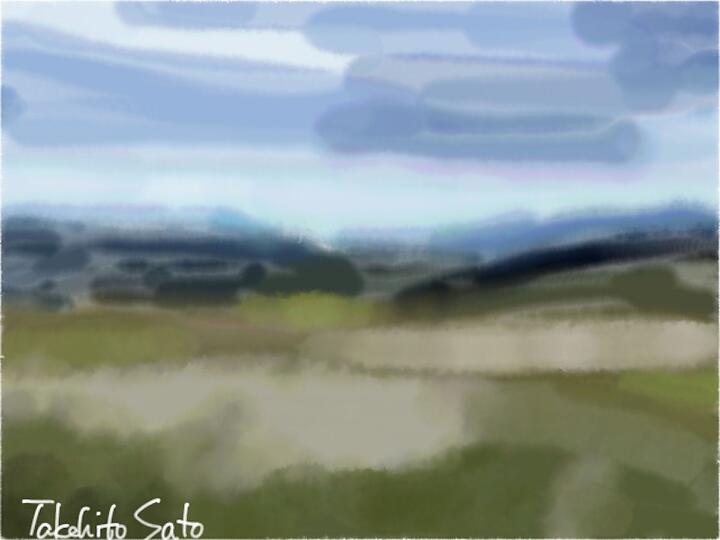 334 Pasture fields in Nakafurano Town 2023年9月 美瑛・富良野サイクリングで 中富良野町牧草畠 - Adobe Fresco / Epic Broken Roller
