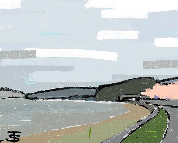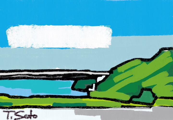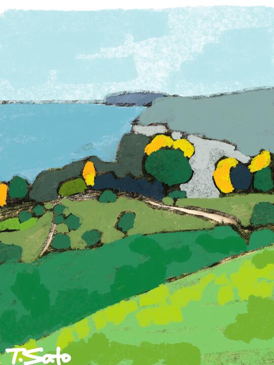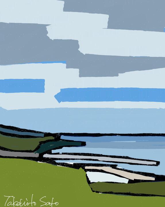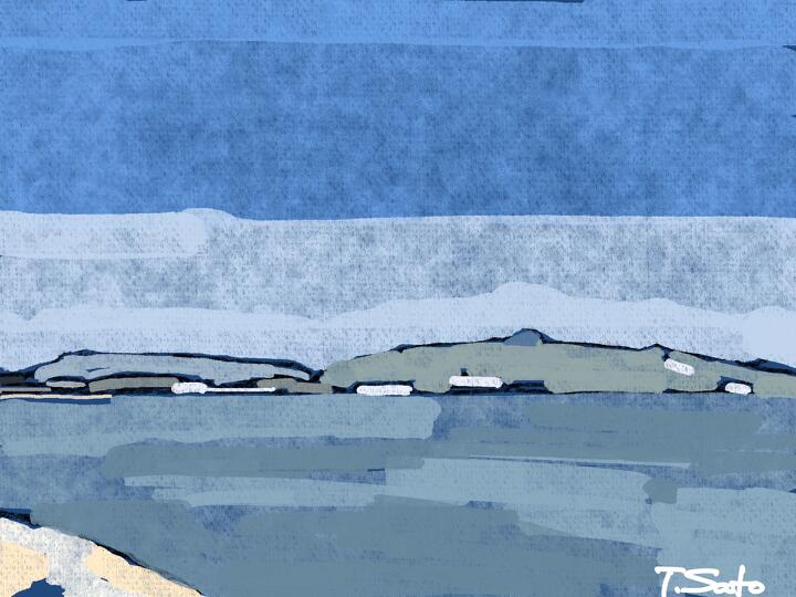 44 Notoichi 2023年6月、友人たちと能登半島1周のサイクリング。2024年1月1日の地震でこの道も走れなくなっているかも。- Procreate,Dryink,Moorilla
