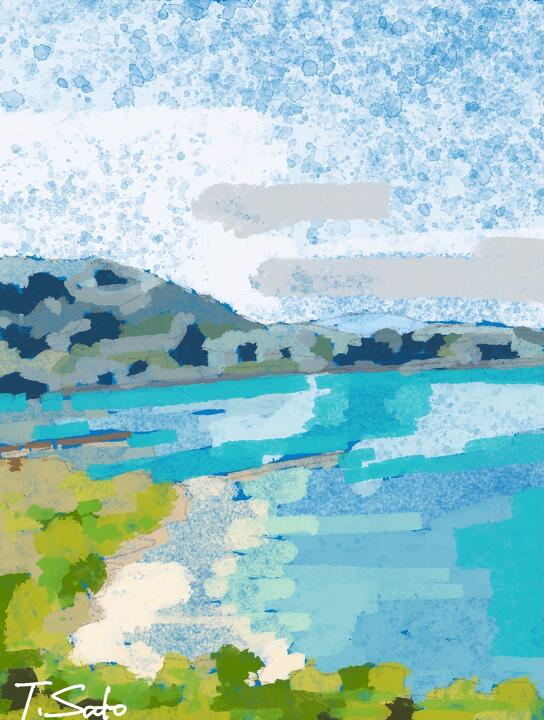 350 Lake Fuchu,Sakaide City 2017年4月 坂出市府中湖の春 - Adobe Fresco / Inkroller+EPIC Bloken Roller