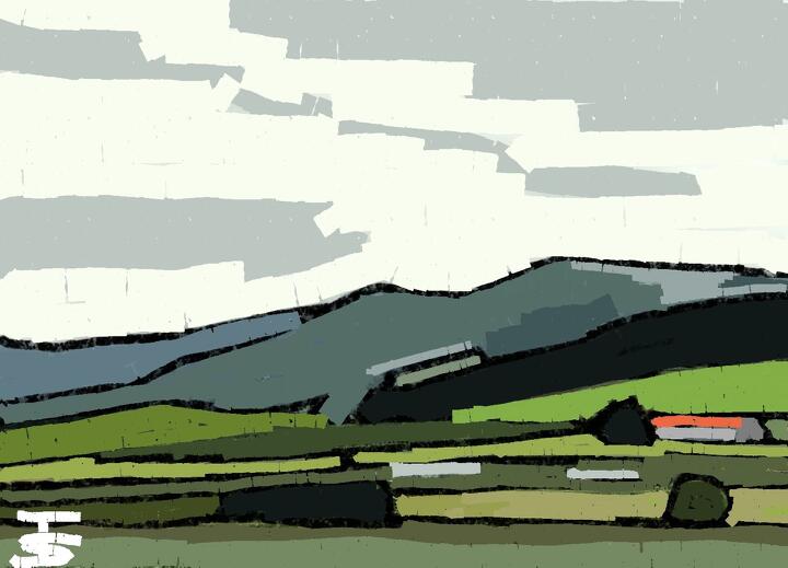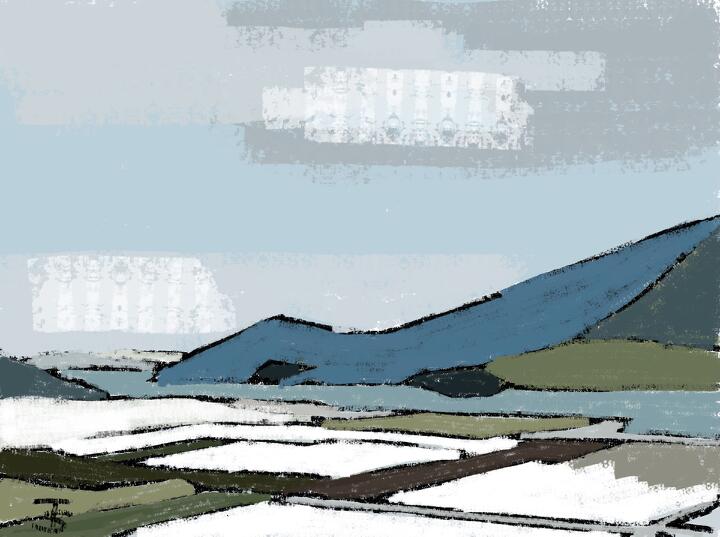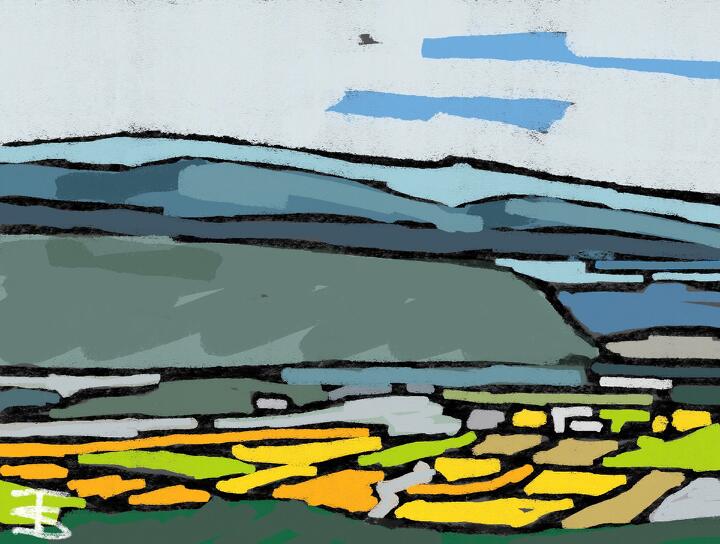 70 Farm in Biei ネットの写真から。- Procreate,Dryink,Moorilla