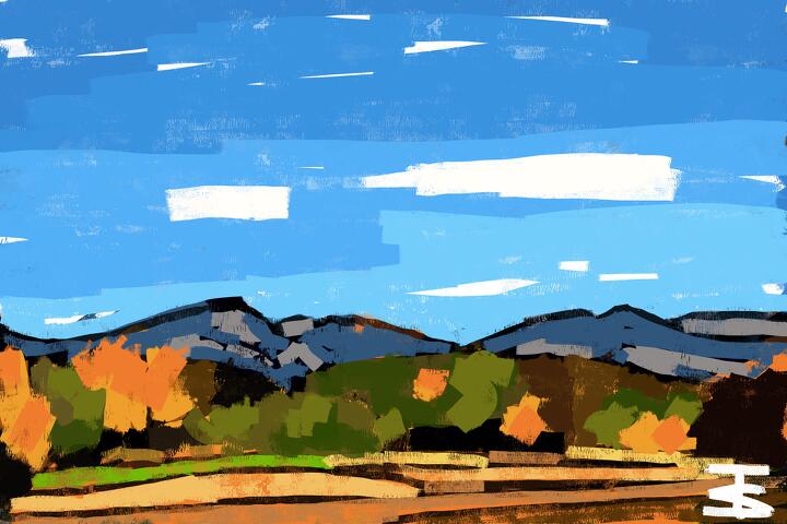 316 View from Iizunayama Park 小諸市飯綱山公園から湯の丸高原方面 秋 - Adobe Fresco / Inkroller