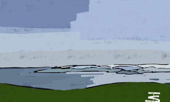 38 winter,minuma 2024年1月、見沼代用水沿いの散歩道。- Procreate,Dryink,Moorilla