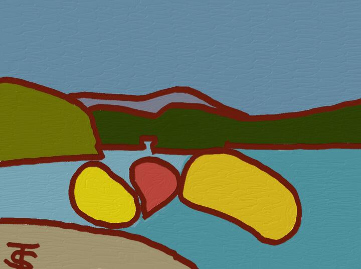 342 Spring at Fuchu Lake 2017年4月 香川県坂出市 府中湖の春 - Adobe Fresco / Oil Thick / 熊谷守一へのオマージュ