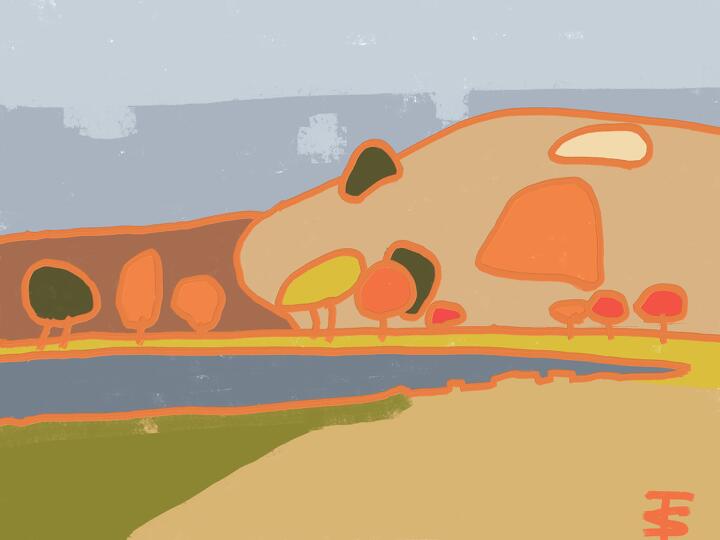 332 Shodoshima 2015年11月 小豆島で - Adobe Fresco / Oil Thick / 熊谷守一へのオマージュ