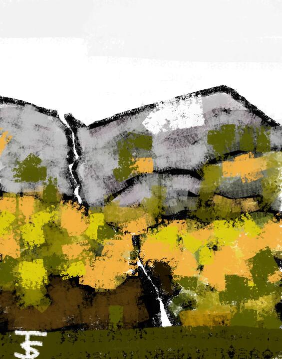 287 View from Flåm Line 2012年10月 北欧旅行 フロム鉄道の車窓から - Procreate / Charcoal,Scratched Roller
