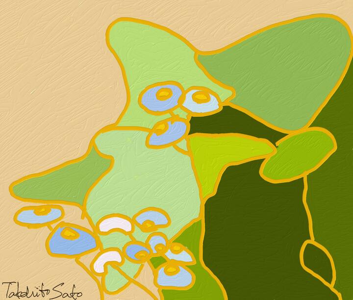 352 Forget-me-not 2023年7月 軽井沢植物園で ワスレナグサ - Adobe Fresco / Oil Thick / 熊谷守一へのオマージュ