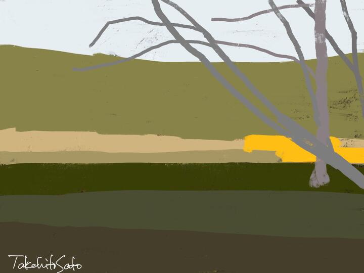 27 Winter,Minuma,Saitama 見沼代用水沿いの散歩道。奥にはさいたま新都心の合同庁舎。- Procreate,nicholas