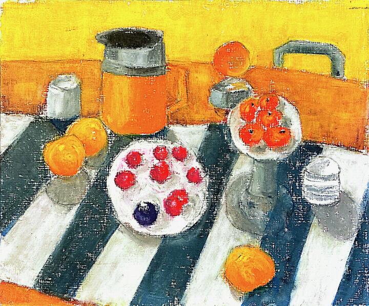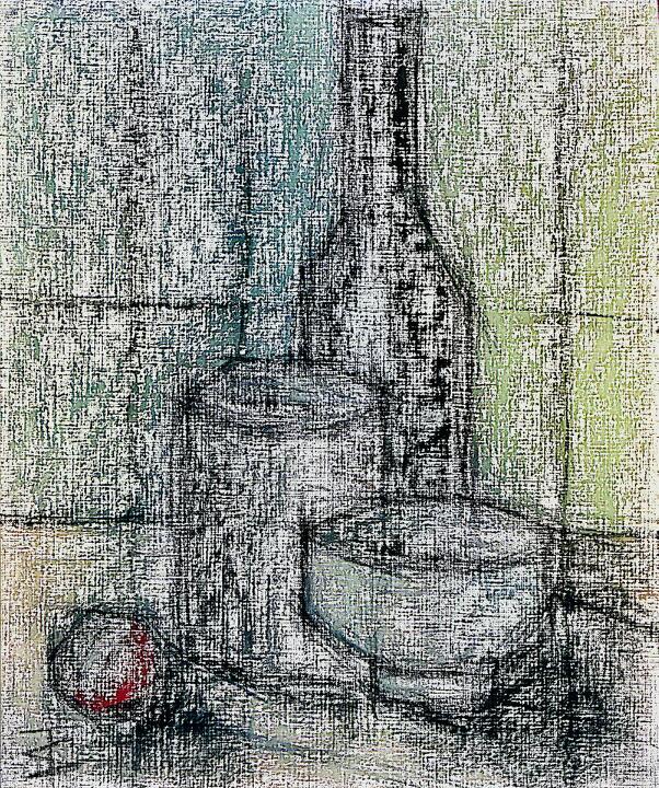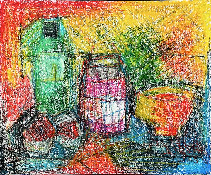36Still Life キャンバスボードにジェッソを塗り重ねて下地処理し、Jan MunroのOilを河内のオイルパステルで模写 - KAWACHI Oil Pastel on canvas bouard